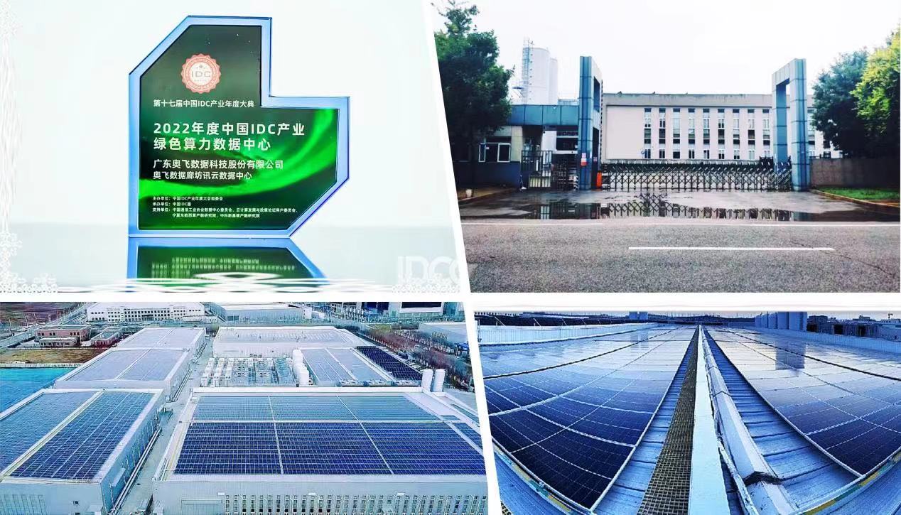 奥飞数据・廊坊讯云数据中心是绿色节能数据中心,是首个实现分布式光伏发电的数据中心,数据中心光伏面积约31,000平方米,装机规模4.2MW,年发电预计不低于600万度电,节约标准煤2,016吨,每年减少CO₂排放5,583吨,发电采用“自发自用,余电上网”方式并网。